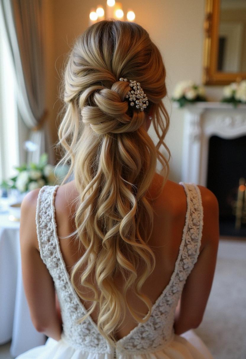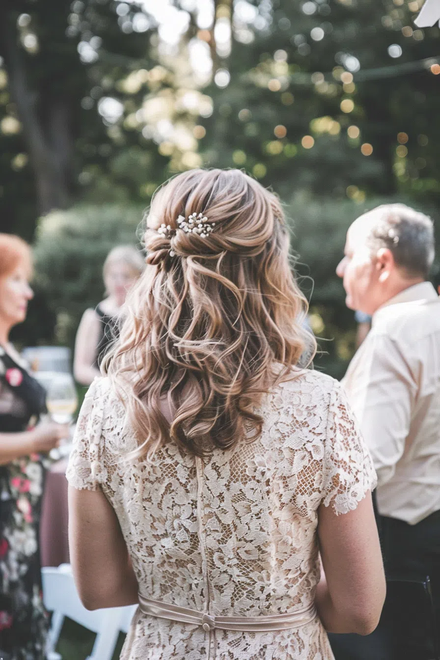 - Romantic Half-Up with Curls: Pull the top section of your hair back, securing it with pins or a decorative clip, and let soft curls cascade down your back.