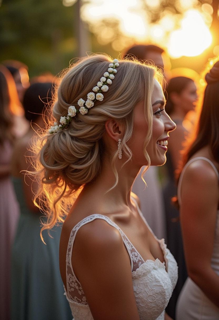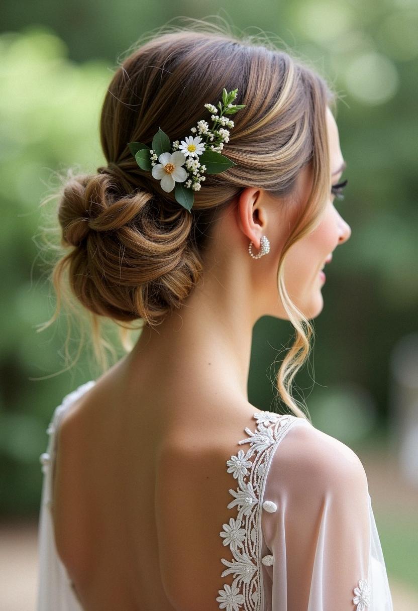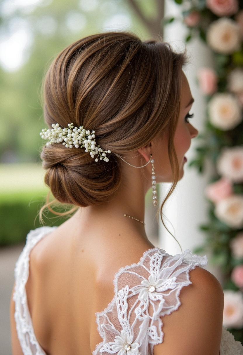 - Fresh Flowers: For a garden or outdoor wedding, small fresh flowers or a floral comb can be incredibly charming.